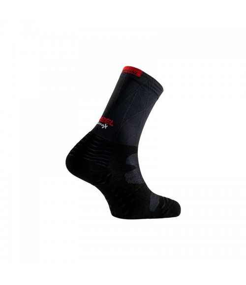 Fabricado con la tecnología Fir-tech que consiste en una estructura que libera de compresión las articulaciones y los grupos óseos, y localiza su efecto permitiendo los movimientos con naturalidad Asimismo, está confeccionado con la tecnología de Lurbel, Bmax, calcetines que te previenen de la aparición de ampollas. La tecnología Bmax, tiene como misión mantener las condiciones óptimas de la piel de tus pies. Todo esto combinado con la base de sus prendas, la Silver Base Layer de Lurbel, una rejilla con un alto poder antibacteriano que erradica los malos olores. Además, están desarrollados con una estructura plantar AWC 2+, combinando ondas de relieve con canales de ventilación. Presenta un refuerzo adicional en la zona de la punta y del talón para reforzar la protección y durabilidad de esta zona, y, así aportar un extra de amortiguación y confort.