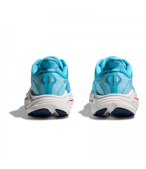 La nueva versión de las Clifton incorpora la geometría suave Meta-Rocker. Esta geometría aumenta la eficiencia al correr y crea una pisada más suave. La geometría Meta-Rocker ofrece una baja diferencia talón-punta y una suela exterior esculpida que crea un efecto de punto de apoyo único, similar al de una mecedora, lo que facilita una marcha guiada. Apoya la forma natural del corredor y promueve un rodamiento eficiente y suave desde el impacto inicial hasta el despegue, lo que permite correr durante más tiempo, ya que reduce la fatiga. La geometría de la entresuela se ha perfeccionado con respecto al modelo anterior, proporcionando una pisada más estable. Una plataforma de EVA moldeada por compresión se encuentra bajo el pie para una amortiguación ligera y reactiva. Generosa, suave y duradera, protege las articulaciones al pisar superficies duras e implacables, a la vez que proporciona una respuesta enérgica en cada paso. Hoka presenta su tecnología Rearfoot-Focused Active Foot Frame, diseñada para sujetar y sujetar el pie en la zona del retropié, mejorando la estabilidad y una transición suave desde el aterrizaje hasta el despegue. Esto se ve reforzado por el drop de 3 mm adicional respecto a la versión anterior. Para mayor comodidad, la plantilla de EVA moldeada proporciona una sensación de suavidad en cada paso.