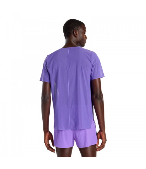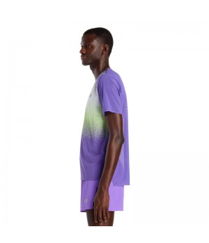 La camiseta New Balance Race Day Ultra Light Printed transforma tus entrenamientos: ultraligera con tecnología NB ICE mantiene la piel fresca y seca, favorece la ventilación y aporta estilo con logo púrpura mate para competir.